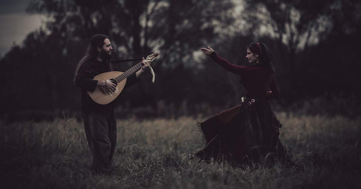 Both in studio recordings and live shows, audiences can expect a rich blend of original compositions inspired by ancient legends and traditional melodies, alongside carefully selected historical pieces dating back centuries. The music of Żniwa is deeply rooted in European folklore, with a particular emphasis on Slavic mythology and spiritual heritage. While the duo occasionally performs traditional European folk repertoire or selected covers, their original songs are written exclusively in Polish. This choice not only highlights the beauty and depth of the language, but also allows it to become an integral, almost instrumental part of the musical expression.