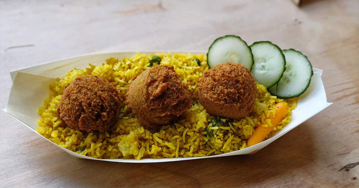 Allergenen: sesam - Curry rijst met falafel (veganistisch, glutenvrij)